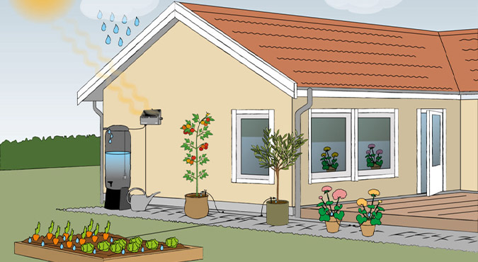 Spara på det färska vattnet i kranen. Regnvatten är bättre för växterna än klorerat kranvatten. Dessutom gör du en insats för miljön genom att inte använda kranvatten för att vattna i trädgården. Metoden förbrukar upp till 90% mindre vatten än vid användning av slang.