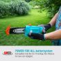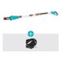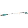 Detta är en teleskopisk stångsåg TCS som är praktisk, kompakt och kapar med precision. Med en knivlängd på 20 centimeter och ett teleskopskaft som kan förlängas når du grenar på upp till fyra meters höjd utan att behöva klättra eller utsätta dig för risker på en svajig stege. Eftersom den teleskopiska sågen endast väger 3,1 kilo utan batteri är den lätt att arbeta med. Det smala kaphuvudet är praktiskt på två sätt. Om du lutar det når du svåråtkomliga ställen i trädtopparna. Du kan också hacka upp grenar som ligger på marken utan att behöva stå på knä eller böja dig ned. På så sätt kan du enkelt få klippresterna i ett behändigt format och göra av med det på ett enkelt sätt.