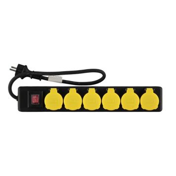 Detta 6-vägs grenuttag med strömbrytare passar utmärkt för dig som behöver förlänga ljusslingan, terrasvärmare eller annat valfritt föremål. Den passar utmärkt att ha utomhus och har sex gula lock för att täcka uttagen.