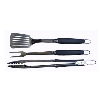 De perfekta grilltillbehören du kan behöva för din grillning. Detta verktygsset innehåller en tång, grillgaffel och grillspade. Samtliga verktyg är i robust rostfritt stål och har värmeavvisande gummihandtag. Tången är utmärkt att greppa och vända maten med och är utrustad med taggar på skaftet, grillspaden är idealisk om du vill vända hamburgare eller annat. Gaffeln är utmärkt tillbehör om du vill greppa din mat. Samtliga tänger är utrustade med krok så att du enkelt kan hänga upp dina verktyg på sidan av din grill och alltid ha verktygen nära till hands. För att du ska lyckas med din grillning måste du också ha bra verktyg.