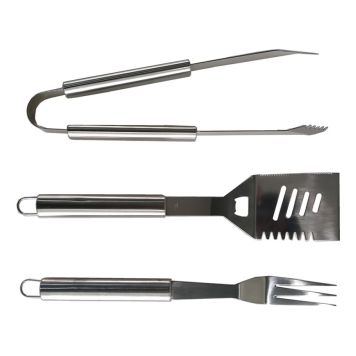 De perfekta grilltillbehören du kan behöva för din grillning. Detta verktygsset innehåller en tång, grillgaffel och grillspade. Samtliga verktyg är i robust rostfritt stål och har värmeavvisande handtag i metall. Tången är utmärkt att greppa och vända maten med och är utrustad med taggar på ena skaftet. Grillspaden är idealisk om du vill vända hamburgare eller annat och är utrustad med taggar på ena sidan för att du enkelt ska kunna skära. Spaden har dessutom inbyggd kapsylöppnare så du enkelt kan öppna din dryck. Gaffeln är utmärkt tillbehör om du vill greppa din mat. Samtliga tänger är utrustade med krok så att du enkelt kan hänga upp dina verktyg på sidan av din grill och alltid ha verktygen nära till hands. För att du ska lyckas med din grillning måste du också ha bra verktyg.