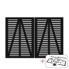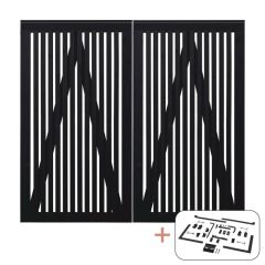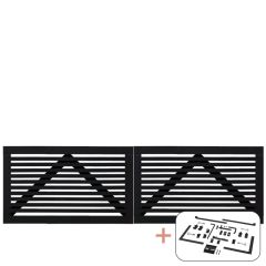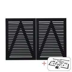 Detta beslag för dubbelgrindar från Plus ger en stabil upphängning och enkel justering av två grindblad. Stålkonstruktionen är varmgalvaniserad och pulverlackerad med struktur, vilket skyddar mot rost, fukt och slitage. De justerbara stängerna gör det lätt att finjustera grindarnas position så att de möts korrekt och hänger rakt över tid, och beslaget levereras med skruvar och bultar för en snabb och smidig installation.