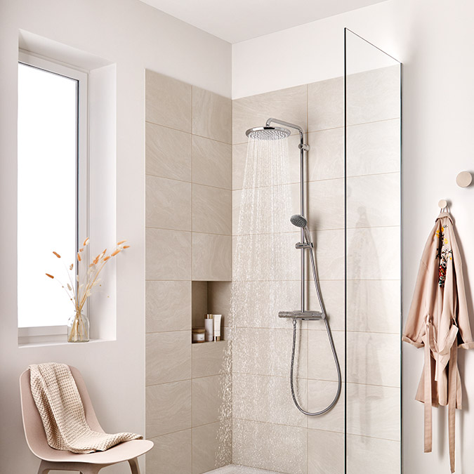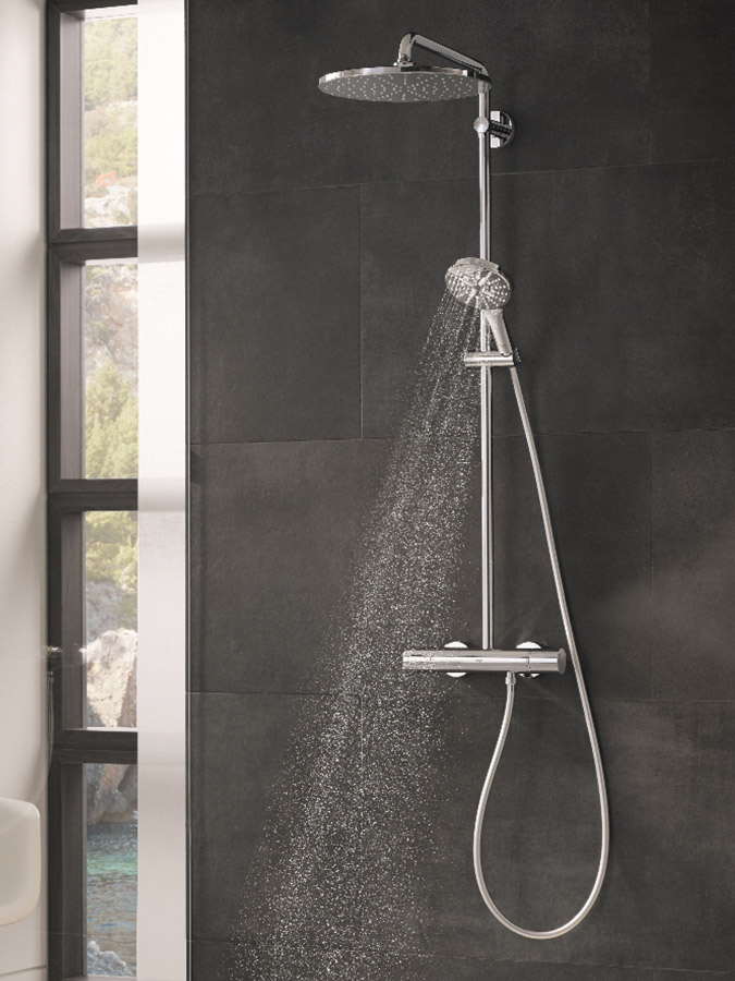 Letar du efter ett duschsystem som erbjuder maximal komfort och intuitiva kontroller med unik design? Så här vill du att en dusch ska vara: Den innovativa SmartControl-tekniken låter dig välja och kombinera huvud- och handdusch som du vill. Dessutom kan du justera vattenmängden genom att trycka på/vrida på en knapp. Den 360 mm breda XXL-huvudduschen omsluter hela kroppen med ett lugnande vattenflöde. Handduschen är försedd med GROHES praktiska enklicksstrålväljare och fyra olika strålmönster.