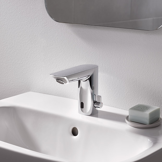 GROHE Sense drivs med batterier eller anslutet till elnät (230v). Det går även att komplettera med ett förlängningskit för svåråtkomliga platser. GROHE Sense kräver ingen avancerad installationsteknik. Själva installationen i sig tar cirka 10-15 minuter att slutföra.
