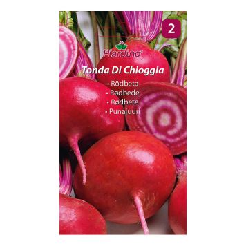 En härlig vacker rödbeta för den som vill odla sin egna grönsaker. Betorna i denna planta är runda och färgen går randigt i rosa och rött, vilket gör denna perfekt för att piffa upp maträtter med. Denna rotfrukt trivs bäst i medeltung, basisk lerjord och rekommendationen är att odla dessa för sommar- och höstskörd. Betorna går bra att lagra och har många härliga tillagningsmöjligheter, allt från varma rätter till kallpressad juice. Rödbeta är bra för matsmältningen och påskyndar metabolismen.