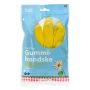 Naturgummi/latex med pudrad insida. OBS, Kommer i slumpvald färg i antingen blå, gul eller rosa.