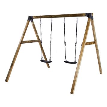 Denna gungställning är både stabil och stilren tack vare sin konstruktion i fyrkantigt trä, vilket ger en hållbar och naturlig känsla som smälter in i trädgården. Med generösa mått på 220 x 240 x 253 centimeter finns gott om utrymme för lek och rörelse. Montering är enkel, då allt som behövs ingår i paketet – jordankare, gungbeslag, skruvar, hörnbeslag och borr. De två svarta gungsitsarna är bekväma och säkra, anpassade för barn upp till 50 kilo. Dessutom är gungställningen tillverkad av PEFC-certifierat trä från europeiska skogar, vilket gör den till ett tryggt och miljövänligt val för familjen.