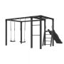 Denna gungställning från Daylife-serien erbjuder en perfekt kombination av lek och funktionalitet. Med två robusta gungor och en rutschkana kan barnen njuta av mängder av utomhuslek. När barnen växer ur gungorna kan ställningen enkelt omvandlas till en torkställning, utegym eller en elegant pergola, vilket gör den till en långsiktig investering för din trädgård. Daylife-serien är designad för att hylla vardagen och anpassa sig efter dina föränderliga behov, vilket gör det enkelt att skapa ett vackert och funktionellt uterum. Byggsatsen är enkel att montera, vilket sparar tid och ansträngning.