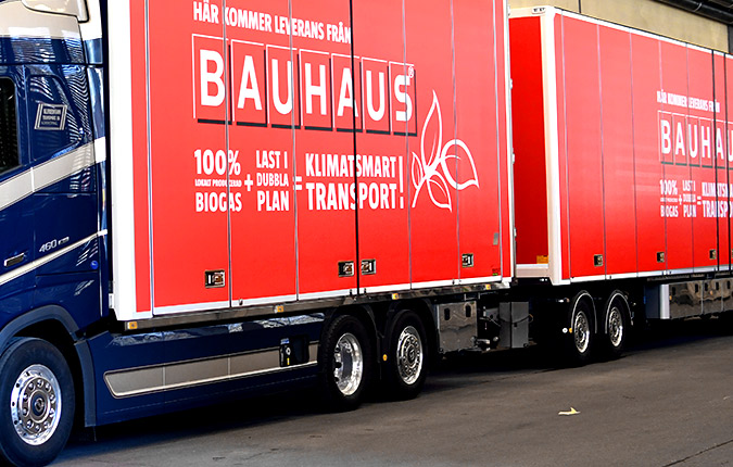 Transporter från centrallager till varuhus sker med hjälp av PostNord medan varor som säljs via e-handel körs ut med BAUHAUS egna lastbilar. BAUHAUS strävar även på att öka andelen tågtransporter. Läs gärna intervju med Håkan Asp, chef för logistikutveckling på BAUHAUS webb om hållbarhet i logistiken.