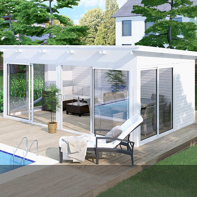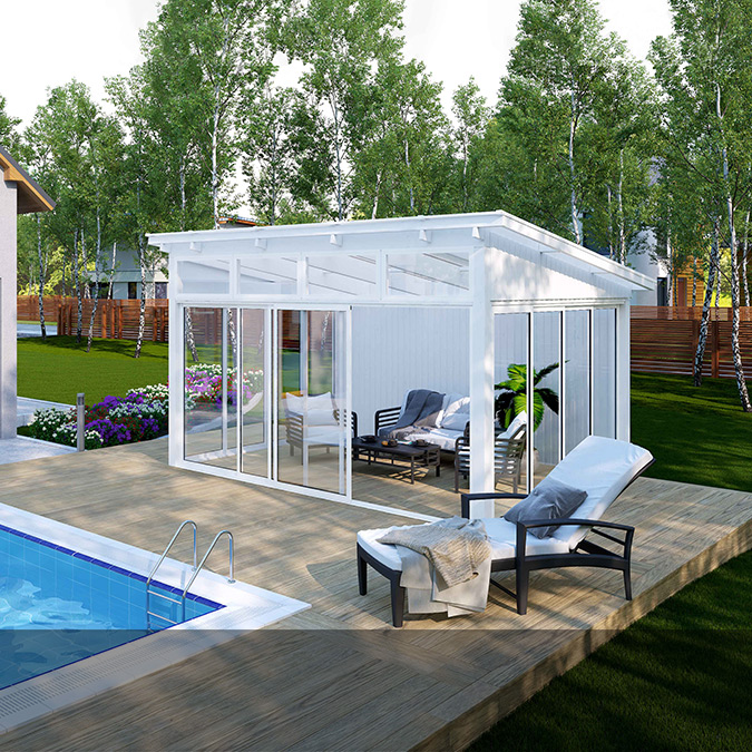 I sortimentet finns ett antal färdiga uterumssatser. Dessa är modeller med fasta mått som du kan beställa direkt i E-handeln.