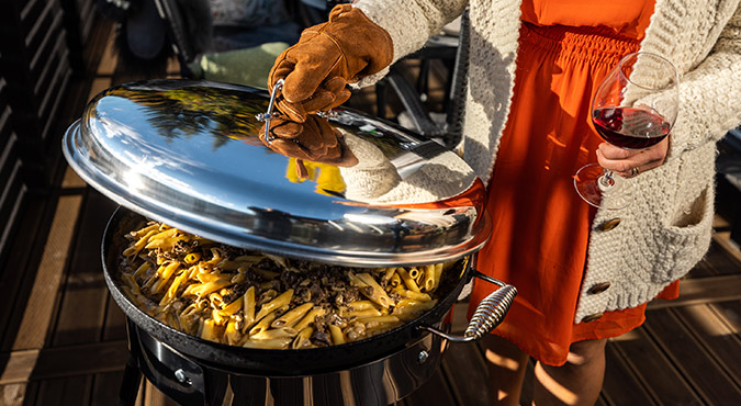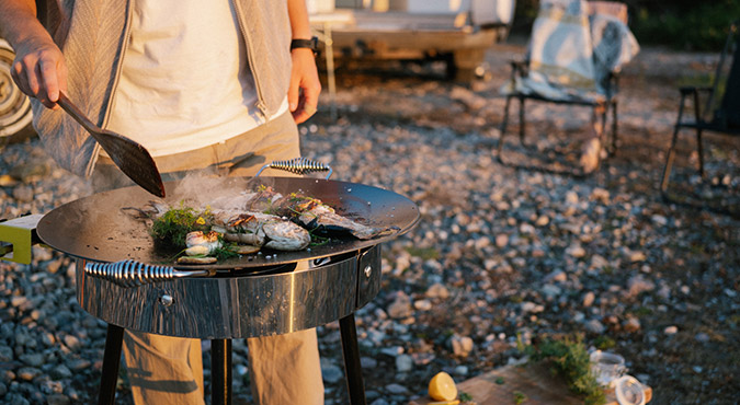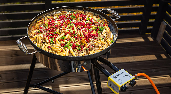 Då är en häll ett perfekt alternativ. Allt som behövs är tillgång till gasol eller eld – och fördelarna med att laga mat utomhus är många.