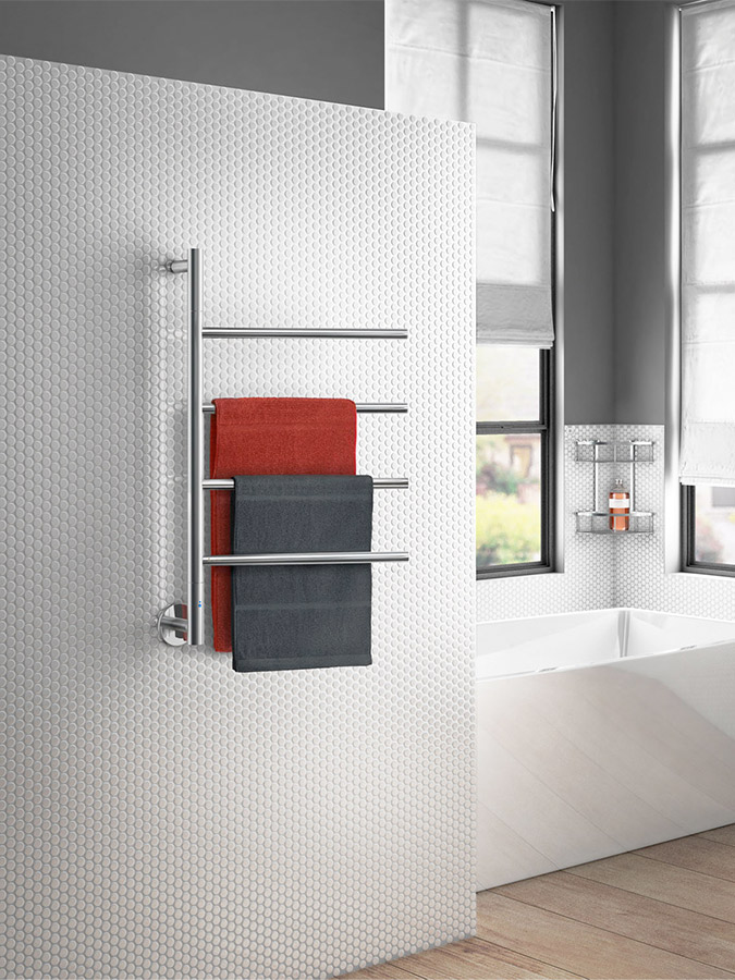 Det finns elektriska handdukstorkar med strömkabel och stickpropp för anslutning i eluttag samt torkar utan sladd för dold elanslutning men med sladd som tillval.