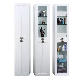 Färdigmonterat högskåp i Skärgårds serien. Högskåpet finns i fyra färger med fem olika frontpaneler. Högskåpet har fyra flyttbara barnsäkra glashyllor, dörr med softclose funktion samt en mängd valmöjligheter på handtag. Tips! Du kan montera ihop flera högskåp om du behöver mer förvaraing. Montagekit ingår.