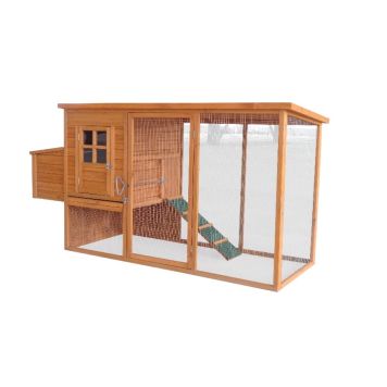 Praktiskt hönshus i två våningar med inhägnad. Utdragbar back för enkel rengöring. Enkel tillgång till hönsen genom luckan. Inklusive värprede. Taket är belagt med kraftigt takpapp. Hönshuset är tillverkat i brunbetsad 8 mm furu. Levereras delvis monterad i sektioner, vilket ger snabb och enkel montering.