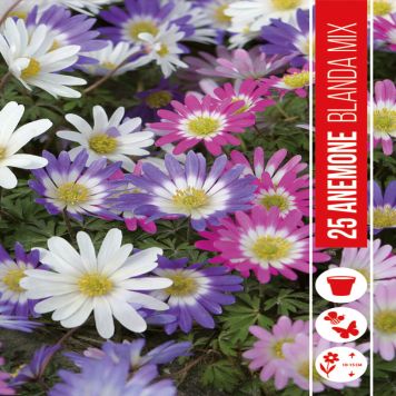 Tusensköna-formade blommor i en blandning av pastelltoner lyser upp din vårträdgård. Dessa berömda vindblommor är härstammar från Grekland, är mycket tåliga och kommer tillbaka år efter år. Plantera i full sol till lätt skugga. De är lågväxande på 10-15 cm och kan spridas över åren i en färgglad matta.