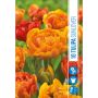 Ge dig själv en gåva av dessa fantastiska dubbla tulpaner. Stabila stjälkar når upp till 16-18 tum fullvuxna och visar massiva blommor helt fyllda med rufsiga kronblad. Blommor öppnas sent på våren färgade i en kombination av orange, gyllene och röda. Föredrar ett soligt till halvskuggigt läge. Sprudlande i en snittblomsbukett.