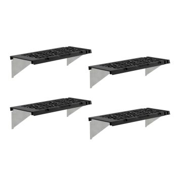 Förbättra funktionaliteten i ditt växthus med denna praktiska hyllsats! Tillverkad av slitstark polypropylenplast, kan varje hylla bära upp till 20 kilo och är utrustad med fästen för enkel montering på växthusväggar eller hörn. Hyllorna har dräneringshål för att effektivt hantera överflödigt vatten och jord, samt skåror för att hålla dina trädgårdsredskap. Dessutom kan du enkelt ansluta dina växthängare till undersidan!