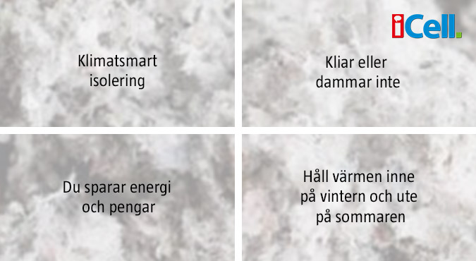 - iCell cellulosaisolering kan ta upp och avge fukt som därmed tillåter att huset andas vid användande av ångbroms istället för diffusionsplast.