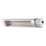 Styr denna terrassvärmare med den medföljande fjärrkontrollen. Utmärkt att placera på altanen eller terrassen de kyliga kvällarna. Kan även användas inomhus om så önskas. Utformad med den senaste IR teknologin och ger omedelbar värme. Infravärmaren ska monteras horisontellt med avståndet 50 cm från taket och 50 cm från sidoväggar. Den ska också vara placerad 180 cm från golvet och 150 cm ifrån objekt som är lättantändbara. Väggfästen medföljer. Godkännande GS/CE.