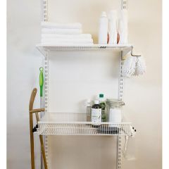 Köp antingen komplett lösning för garderob, öppen förvaring eller bygg in förvaringsinredningen innanför skjutdörrar. Tycker du inte att kombinationsförslagen på paketlösningarna är optimala för ditt utrymme. Då kan du enkelt plocka ihop den inredningen som passar dig i lösa delar! Trådbackar, trådhyllor, meshbackar, hängskenor, konsoler, väggskenor, hyllor, stativ mm.