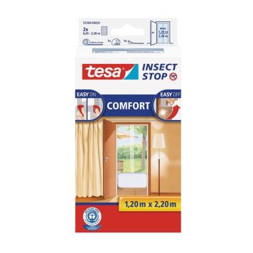 tesa Insektsskydd COMFORT för dörrar är en mycket effektiv lösning mot myggor och insekter i hemmet. Insektsnätet matchar de flest uteplats- och balkongdörrar och låter dig att lämna dörren öppen under utsatta perioder utan att du behöver oroa dig för besök av småkryp. Tack vare en speciell kardborrelösning är fastsättning och borttagning av nätet snabbt och enkelt avklarat. Du behöver bara pressa den självhäftande kardborretejpen på dörrkarmen och använda den medföljande pressanordningen för att stadigt trycka på insektsnätet för att slippa insekterna.