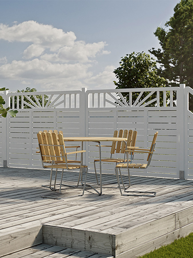 Hos oss finns det många valmöjligheter att kombinera staket, skärmar och vindskydd så du får en enhetlig trädgård. Med hjälp av skärmar och vindskydd kan du skapa en ostörd liten oas i trädgården där du kan njuta av härliga sommarkvällar utan vind och blåst. Det finns många möjligheter när man ska välja ett underhållsfritt staket!
