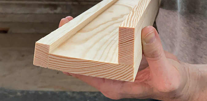 Steg 5 Limma fast framkantslisten framifrån mot framkanten på hyllplanet (läs instruktion/torktid på limmet), här är det bra att sätta press med limknektar eller tvingar under torktiden.