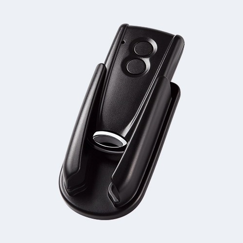 Med hållaren kan fjärrkontrollen monteras enkelt på väggen i garaget.
