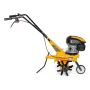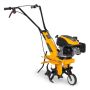 Denna bensindrivna jordfräs är utrustad med en kraftfull 123 kubik motor som levererar 1,9 kilowatt, vilket gör den idealisk för att bearbeta jorden i mindre trädgårdsland. Med en arbetsbredd på 36 centimeter och ett arbetsdjup på 12 centimeter kan du enkelt förbereda marken inför sådd. Fyra robusta metallrotorer, två på varje sida, säkerställer en jämn och effektiv bearbetning. Det justerbara handtaget ger dig möjlighet att anpassa höjden för ökad komfort, och det praktiska framhjulet underlättar transporten av maskinen. Perfekt för dig som vill ge nytt liv åt din trädgård och optimera jordens kvalitet inför odlingssäsongen!