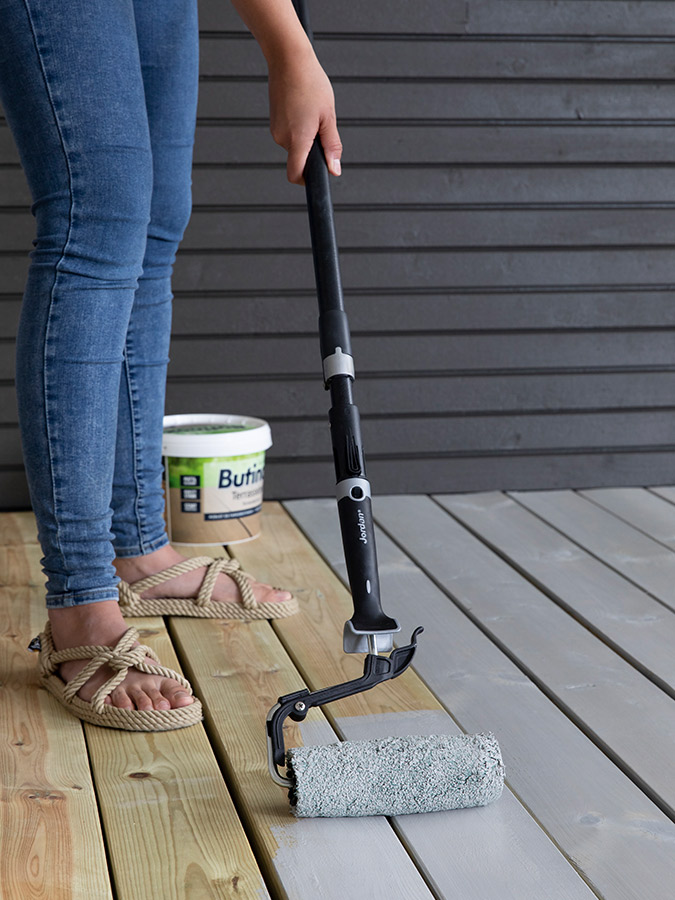 Med Butinox Terrasslasyr får du ett skydd för terrassen som varar upp till tre år. Lasyr skyddar terrassen mot sprickbildning, fukt, alger och mögel – och små barnfötter mot stickor.