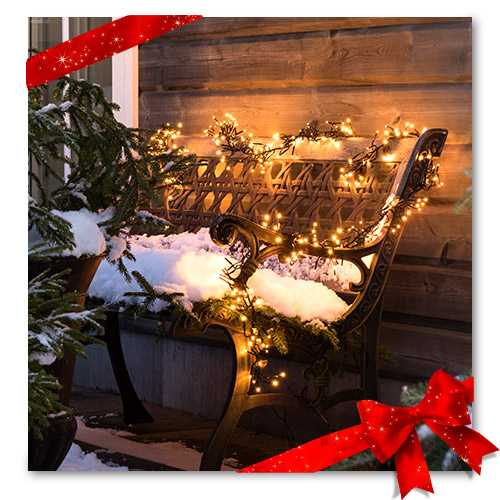 Ge dina grannar och förbipasserande en riktig julupplevelse genom att dekorera trädgård, entré eller balkong med stämningsfull belysning och dekorationer. Välkomna gästerna med slingor i träd och buskar för att skapa en glittrande och festlig atmosfär.