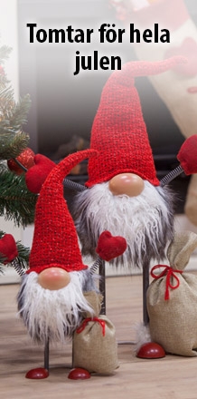 Välj mellan klassiska tomteluvor för en traditionell look, eller långa tomteluvor för en lekfull känsla. Vi har också små tomteluvor som kan användas som dekorationer på bord och i fönster, vilket gör att varje del av hemmet får en dos julkänsla.