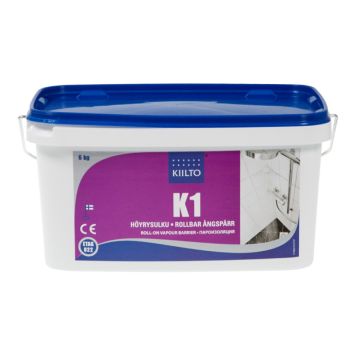 Kiilto K1 är en vattenbaserad, färdigblandad ångspärr för tätskiktsapplicering av ytor före montering av plattor (ej lämpligt för simbassänger). Kiilto K1 ska användas i kombination med Kiilto K2 tätskikt enligt Kiilto K-tätskiktssystem.