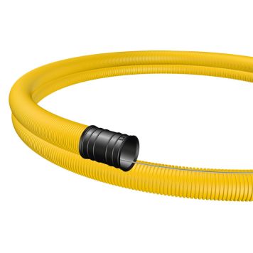 Kabel med ett korrugerat skikt samt koppling i ena änden. Utrustad med metalldragtråd för en lättare och säkrate installation.