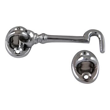 Denna kajuthake är tillverkad av mässing och har en elegant förkromad yta, vilket gör den både hållbar och stilren. Perfekt för att säkra dörrar och fönster i hemmet. Produkten levereras komplett med skruvar, vilket gör installationen enkel och smidig.