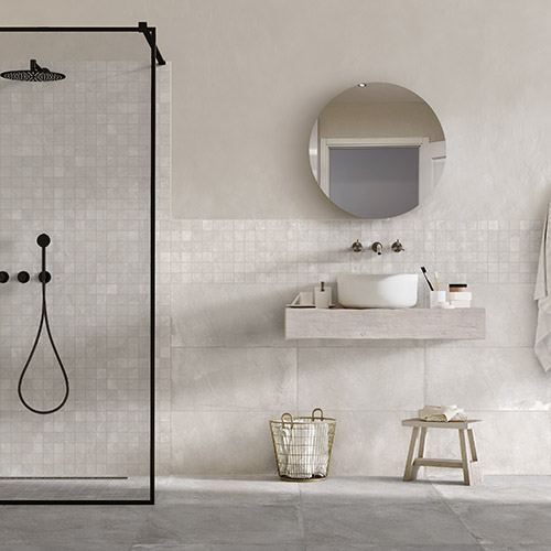 Tänk på att välja plattor som är mindre än 20 x 20 cm, för att kunna skapa ett bra fall in mot golvbrunnen.