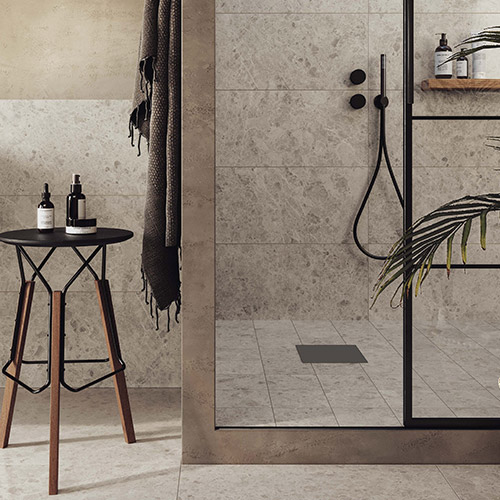 Alternativt kan du lägga mindre plattor runt själva golvbrunnen eller välja en väggnära golvbrunn från Unidrain som tillåter stora plattor på hela utrymmet.