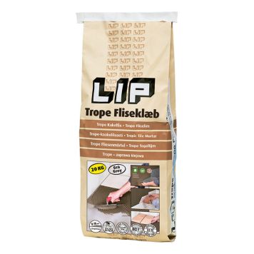 Är en flexibel och cementbunden fästmassa. LIP Trope används för uppsättning och läggning av kakel, klinker, marmor, betongplattor, sjösten, tegelsten, glasullsplattor och Rockwoolplattor mm.