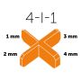 Används för att få en jämn fogbredd vid plattsättning. Distansen har fyra ben med tjocklek 1 mm, 2 mm, 3 mm och 4 mm. ...