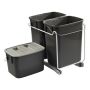 Passar i de flesta diskbänkskåp. Perfekt för all typ av källsortering, återvinning eller annan typ av förvaring. Denna sats bidrar till en bättre miljö då kärlen är producerade av återvunnen plastråvara.