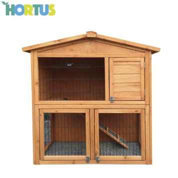 Kaninbur från Hortus i två våningar. Separat sovrum med stege. Det går att öppna för snabb borttagning av exkrementer. Taket är belagt med takpapp och är i fin röd cederträfärg. Kan sättas ihop med Hortus betesbur.