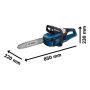 Den här kedjesågen från Bosch passar alla snickeriarbeten på byggarbetsplatsen och arbete i trädgården. Den kraftfulla borstlösa motorn med BITURBO technology levererar en kraftfull prestanda med låg ljudnivå så att du kan arbeta i ljudkänsliga områden som bostadsområden eller företagets lokaler, utan avgaser. Den elektroniska motorbromsen stoppar kedjan snabbt efter att avtryckaren släppts. OptiCut justerar hastigheten och vridmomentet efter respektive arbetssituation vilket gör att man undviker irriterande fastkörning under högre arbetsbelastning.