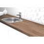 Skivan är helt vattentät, värme- och reptålig. Den lätta och tåliga distansplattan är lätt att installera i både kök och våtrum. Tack vare sin stora storlek kan plattan monteras i ett stycke och det finns inga fogar eller fogar.