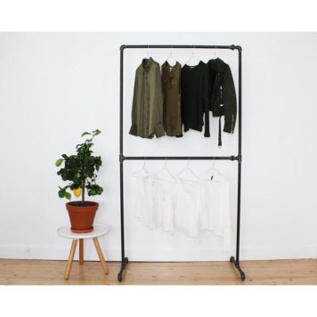 Klädstället Tribeca har en klassisk konstruktion med en unik twist av råa vattenrör som material. Trots att klädställningen är placerad på golvet tar den upp begränsat med plats då kläderna kan fördelas på två plan. Kläderna kan sorteras överskådligt, så att din garderob är lätt att navigera. Blusar och skjortor kan till exempel placeras upptill medan byxor kan hängas på klädstången under.