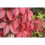 Klättervildvin är en snabbväxande klätterväxt. Dess klättrande växtsätt gör att den kan slingra sig upp längs stöd som murar, träd eller staket. Växten har stora, femdelade flikiga blad som bildar ett tätt och frodigt bladverk. Under sommaren är bladen gröna eller mörkgröna och under hösten övergår de i fantastiska röda nyanser, vilket ger en imponerande färgskala. Klättervildvin trivs i olika lägen, men föredrar helst näringsrik och väldränerad jord. Detta är en vacker och tålig prydnadsväxt i trädgården.