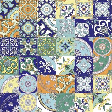 Finns i flera färger samt både i matt och blank yta. Andra färger är vit, svart, beige, ljusgrå, ljusblå, havsblå, kobolt blå, röd och gul. Finns även i två olika färger med en massa mixade dekorer i Marockansk stil.