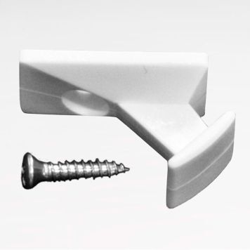 Vit knape används för att vira dragsnöret runt den lilla armen, så snöret låses och håller sin position. Knapen fästes vid fönsterkarmen med skruv.