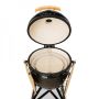 Kamado Bono erbjuder en snygg svart kamadogrill med en stor grillyta som samtidigt är bränslesnål. Locket är utrustat med en termometer för att du smidigt ska kunna övervaka temperaturen inne i grillen. Tillverkad i värmebeständig keramik och glaserad med värmresistent keramisk glasyr, är denna grillen både robust och hållbar. Grillgallret är tillverkat av rostfritt stål och har ett flexibelt grillgallersystem med två stekzoner och en tvådelad värmedeflektor. Bottenventilen är tillverkad av rostfritt stål medan toppventilen är av gjutjärn.