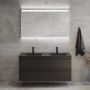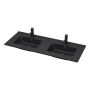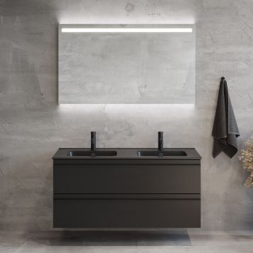 Komplett badrumsmöbel innehållande ett modernt tunnare porslinstvättställ med dubbla bassänger, ett svart matt underskåp med två mjukstängande lådor i metall samt mattlackad lådfront. Badrumsmöbeln har en enkel men stilren design som ger en modern och elegant känsla i ditt badrum. Underskåpet kommer färdigmonterad, det enda du behöver montera själv är lådfront och handtag. Med Camargue Skärgård sätter du enkelt ihop ett unikt badrum anpassat efter stil, utrymme och behov. Kombinera gärna din badrumsmöbel med högskåp i samma serie och glöm inte göra din möbel komplett med spegel eller spegelskåp.