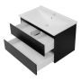 Venedig serien är en eftertraktad kollektion av badrumsmöbler som kombinerar modern design med tidlös elegans. Lådorna är utrustade med smidiga integrerade handtag, vilket ger en minimalistisk och stilren look. De två rymliga lådorna stängs mjukt och tyst, vilket ger en lyxig känsla och minskar slitage över tid. Tvättstället är tillverkat av högkvalitativ gjuten marmor och erbjuder en kantig och modern design. Ytan är mattvit både invändigt och utvändigt, vilket ger en elegant look och är lätt att rengöra.